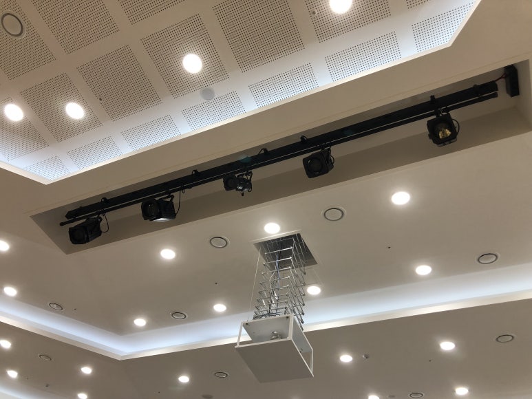 출력부분으로는 프로젝터 엘리베이션을 설치하고, #HITACH CP-X8170에 교회의 요청으로 전동스크린 4:3 152"를 설치했습니다.