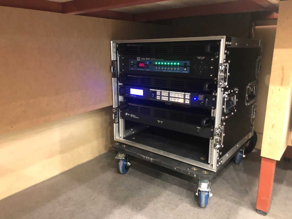 이곳에 메인 스피커로는 #JBL 사의 #SRX518P 1조를 리깅하여 설치해 드렸습니다.